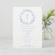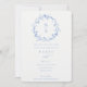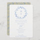 Elegant Blue Floral Laurel Wreath Monogram Wedding Invitation