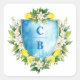 Elegant Blue Floral Lemon Crest Monogram Wedding Square Sticker
