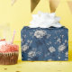 This is a vintage style image featuring an elegant blue floral pattern with intricate white flowers and leaves. The deep navy background creates a striking contrast, highlighting the delicate details of each bloom and leaf. It exudes a timeless charm and sophistication, making it perfect for adding a touch of classic elegance to home decor or fashion accessories. Imagine this design on wallpaper, fabric, or stationery—each piece would feel refined and beautifully crafted.