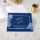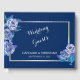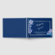 Dramatic and elegant blue and silver watercolor roses decorate the left corner front of this beautiful wedding guest book. Another blue rose and leaf image is at the bottom right corner. The images are placed over a shiny silver frame which encloses your custom text. The text and images are placed on a deep dark blue background. The back of the book is matching solid blue. Very classy! Be sure to see the matching wedding products, including invitations, in our store.