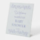 An elegant floral design borders this blue baby shower welcome sign. The perfect addition to your baby shower decor.