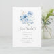 Elegant blue floral watercolor wedding save the date card. Easy to change the text.