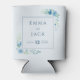 This elegant blue floral wedding can cooler design showcases soft watercolour blooms and greenery framing refined serif typography on a pale background. Ideal for keeping drinks chilled at your reception, hen do, or engagement party, it coordinates perfectly with matching blue wedding stationery. The romantic botanical artwork and cool tones suit coastal, garden, and modern celebrations.