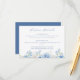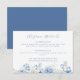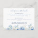 This elegant wedding details enclosure card features a watercolor floral border with beautiful flowers in varying shades of blue as well as delicate calligraphy script.