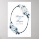 An elegant blue floral wedding hoop poster featuring the bride and groom’s names and their wedding date.