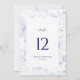 Elegant Blue Floral Wedding Table Number Card