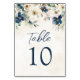 Elegant Blue Floral Wedding Table Number Cards