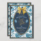 At the centre, a shimmering oval-shaped frame elegantly encloses all the important details, topped with a stunning satin bow for an extra touch of refinement. Floating gracefully across the design, dusty blue party balloons add a festive charm, making this announcement perfect for setting the tone of an unforgettable celebration.