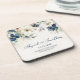 Customizable coasters to match your winter wedding theme with elegant navy blue and cream watercolor flowers and winter greenery.