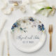 An elegant custom paper plate for your winter wedding wedding or bridal shower with a beautiful navy blue and teal watercolor floral theme.