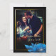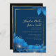 Elegant blue flower with a gold frame, this modern and elegant wedding invitation is an excellent way to invite your guests. The gold elements are just a colour effect created by the artist in the artwork, they are not real gold foil. Simply personalise your event information and photo into this template to create a one-of-a-kind invitation.