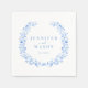 Elevate the ambiance of your bohemian rustic wedding with these sophisticated paper napkins. Adorned with a mesmerising watercolor wreath of vibrant blue folk elements with flower blooms inspired by blue porcelain, personalised with the names of the bride and groom, these napkins bring a sense of refined elegance to your special day.