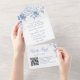 Elegant Blue France Garden Flowers Wedding QR code All In One Invitation