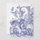 Beautiful blue and white toile pattern featuring a man and a dog with a Roccocco or Late Baroque surround.