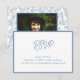 These Elegant Blue French Floral Bat Mitzvah RSVP enclosure card invitations include the option to fully customise all titles and text. The front includes blue text and the back features a dainty blue toile French Floral design along with your Bat Mitzvah's photo. Enter the Zazzle Design Tool for additional design customisations.