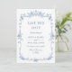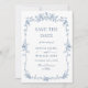 Elegant Blue French Toile Floral Wedding QR code Save The Date