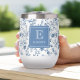 Elegant Blue French Toile Pattern with Monogram and Name - A beautiful, elegant blue and white floral toile de jouy pattern showcasing your customizable monogram initial and name underneath in white serif text on a classic blue background with white border. An ever popular aesthetic, this vintage french country pattern and monogram design is the perfect combination to reflect your personal, classy and timeless style.