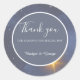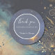Step into a world of wonder with this celestial wedding thank you round sticker, featuring a mesmerising galaxy sky in shades of deep blue tones, adorned with shimmering stars. The round sticker sets the stage for a magical and personalised celebration of love, where every detail reflects your unique story. Customise it with your names, details, thank you, creating a truly enchanting keepsake. Let this dreamy design sweep you into the infinite beauty of love, making your special day unforgettable. Hobinishop