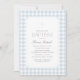 Invite family and friends to celebrate a baptism with this elegant invitation, featuring a light blue gingham background and cross.