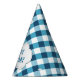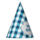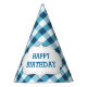 Elegant Blue Gingham Pattern Personalised Birthday Party Hat