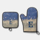 Elegant Blue Glitter Bokeh Monogram Oven Mitt & Pot Holder Set
