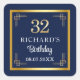Elegant Blue Gold 32nd Birthday Party Square Sticker