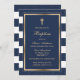 Elegant blue and gold baptism invitation.