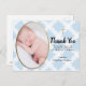 Elegant Blue Gold Cross Baptism Photo Thank you Postcard