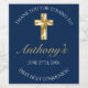 Elegant Blue Gold Cross First Communion Reception Wine Label