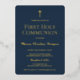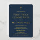 Make your son's First Holy Communion truly special with our invitation featuring real gold foil against a rich dark blue background. This design stands out, emphasising the significance of this sacred event. Personalise the invitation with your son's name, date, time, venue, and RSVP details to create a unique keepsake for family and friends.