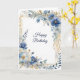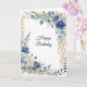 A beautifully designed floral frame featuring elegant blue flowers, delicate leaves, and luxurious golden accents. Fine golden lines add a touch of refinement, enhancing the sophisticated and artistic charm of the card. The harmonious blend of blue and gold creates a timeless and celebratory design, perfect for marking a special birthday.