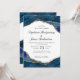 Elegant Blue Gold Foil Agate Watercolor Wedding Invitation