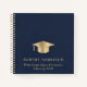 Elegant blue graduation party guest book featuring a gold grad cap and the graduate's name, school and class year in modern typography.