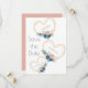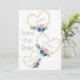 Beautiful deep blue flowers in a pretty rustic gold heart. Add bride and groom name in a heart. Finish this sweet “Save the Date” off with your wedding date. A pretty shade of peach, mauve, pink and coral on the back to match single flower on heart. So pretty and elegant.