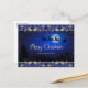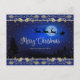 Elegant Blue Gold Holly Santa Merry Christmas Holiday Postcard
