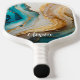 Create your own personalised pickleball paddle featuring custom script calligraphy name and marble blue gold background design.
