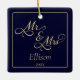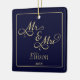 Elegant Blue Gold Mr and Mrs 1st Christmas Ceramic Ornament