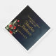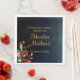 Delicate, sophisticated and full of elegance graduation party napkins with a simple, yet beautiful floral arrangement on the bottom left corner featuring gorgeous red flowers and complimented exquisite green botanicals. Elegant gold customisable typography for the event details on a midnight blue gradient for background.