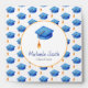 Personalised graduation cd sleeve with blue graduation caps with yellow tassels. Perfect for photography businesses or to gift as a keepsake to friends or family. The envelope has a background of graduation caps but on the front side, there is a white and yellow circle with a bigger graduation cap and the text that you can personalise in blue and grey letters. Click on personalise further if you need to change the font, size or colours. Illustrated and designed by Patricia Alvarez.