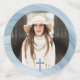 Elegant modern graduation party table confetti featuring a watercolor blue background, photos of the graduate, Class of 20XX with graduation cap and a congrats grad template that is easy to personalise.