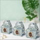 Add a touch of classic sophistication to your special event with these personalized blue and green Chinoiserie toile wedding favor gable boxes. Each box is adorned with a beautiful and intricate pattern featuring pagodas, birds, bridges, and willow trees. The front features a sophisticated gold-framed octagonal shield where you can customize your specific initials (like the 'A & R' shown), along with a tailored 'Thank You for Joining Us' message. A smaller, customizable date tag (like '12 AUG') adds a specific touch to mark the occasion. These sturdy boxes are perfect for holding small gifts, candies, or treats for your guests at weddings, engagement parties, bridal showers, or tea parties seeking a traditional or oriental theme. The pattern covers all sides, and the convenient handle makes them easy to carry. Personalize every detail on Zazzle to make your favors unique.