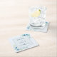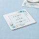 Elegant blue greenery names and date wedding square paper coaster