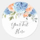 Elegant Blue Hydrangea Blush Pink Roses Classic Round Sticker