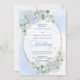 Elegant Blue Hydrangea Eucalyptus Wheat Wedding Invitation