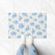 Elegant Blue Hydrangea Pattern Gray Stripe Doormat