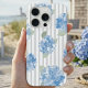 Elegant Blue Hydrangea Pattern Gray Stripe iPhone Case