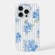 Elegant Blue Hydrangea Pattern Grey Stripe iPhone Case