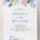 Elegant Blue Hydrangea Pink Blush Roses Wedding All In One Invitation