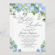 Elegant Blue Hydrangea Watercolor Bridal Luncheon Invitation