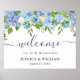 Elegant Blue Hydrangea Floral Wedding Welcome Sign.